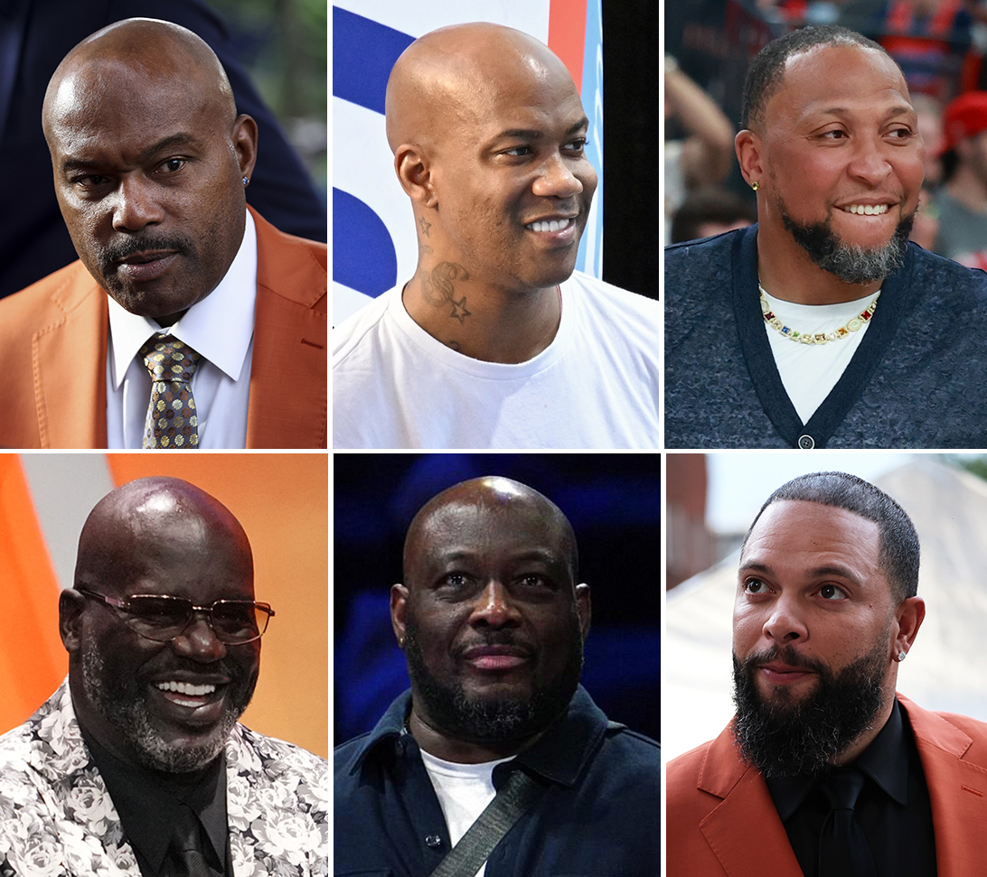 Clockwise: Tim Hardaway Sr, Stephon Marbury, Shawn Marion, Deron Williams, Mitch Richmond and Shaquille O'Neal.