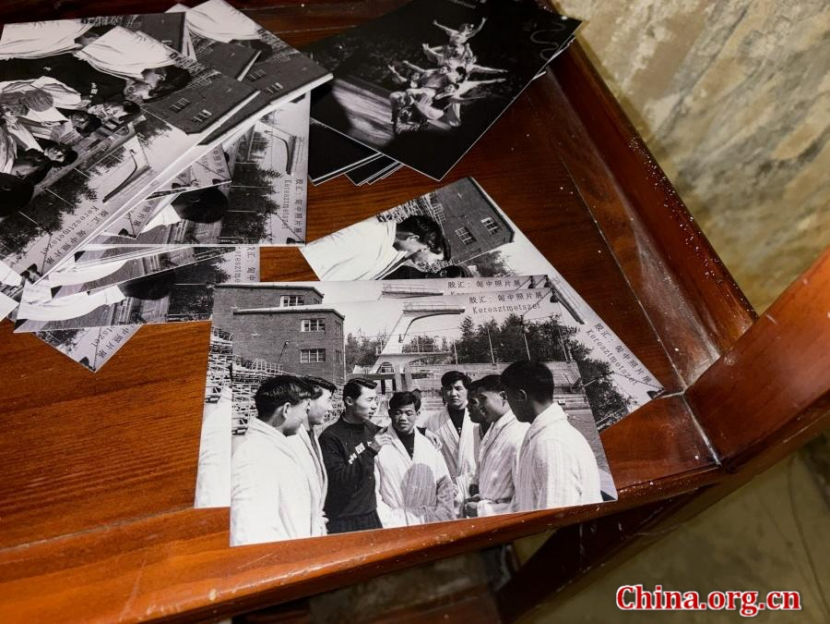 An archival image displays the Chinese swimming team training at the Alfred Hajos National Swimming Stadium in Budapest as part of the "Keresztmetszet" exhibition at Here Cafe in Beijing, China, Sept. 8, 2025. [Photo by Liu Ziying/China.org.cn]