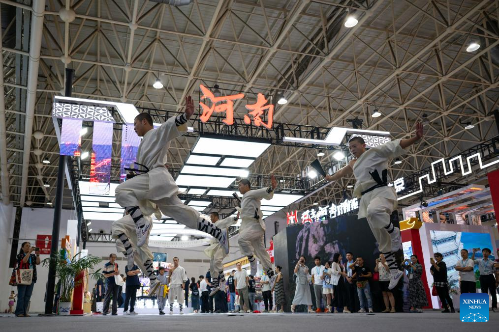 Visitors watch a Chinese martial arts performance at the 2025 China Culture and Tourism Industries Expo in Wuhan, central China's Hubei Province, Sept. 12, 2025. The 2025 China Culture and Tourism Industries Expo, which opened Friday in Wuhan, central China's Hubei Province, has attracted more than 2,000 domestic exhibitors and 50 overseas travel agencies.