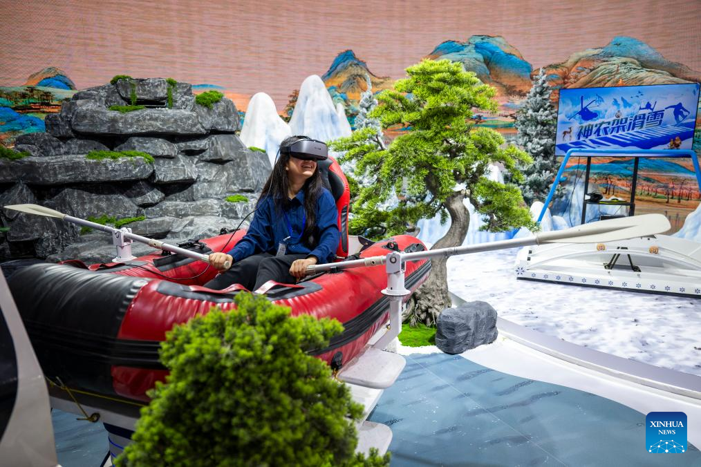 The expo features a 40,000-square-meter outdoor area with a cultural and tourism IP parade of floats. Its 60,000-square-meter indoor exhibition hall showcases new business models, scenarios, and products in the cultural and tourism sectors, including digital clusters, low-altitude tourism, and intangible cultural heritage creative products. (Xinhua/Wu Zhizun)