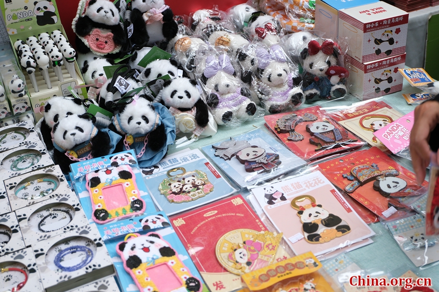 Panda-themed products on display at the 2025 "The Temple of Earth and Me" Beijing Book Fair in Ditan Park, Beijing, Sept. 16, 2025. [Photo by Liao Jiaxin/China.org.cn]