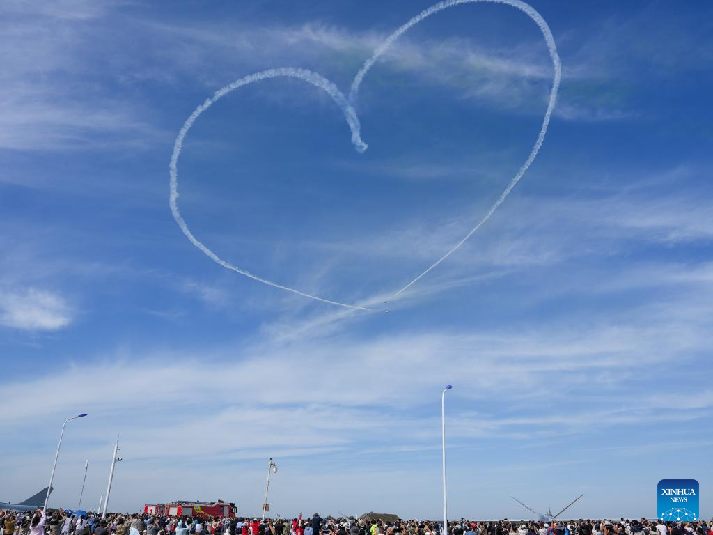 Aircraft of China's Red Falcon Aerobatic Team perform during the 2025 aviation open-day activities of the Chinese People's Liberation Army Air Force and Changchun Air Show in Changchun, northeast China's Jilin Province, Sept. 19, 2025. The events kicked off here on Friday. [Xinhua/Zhang Nan]
