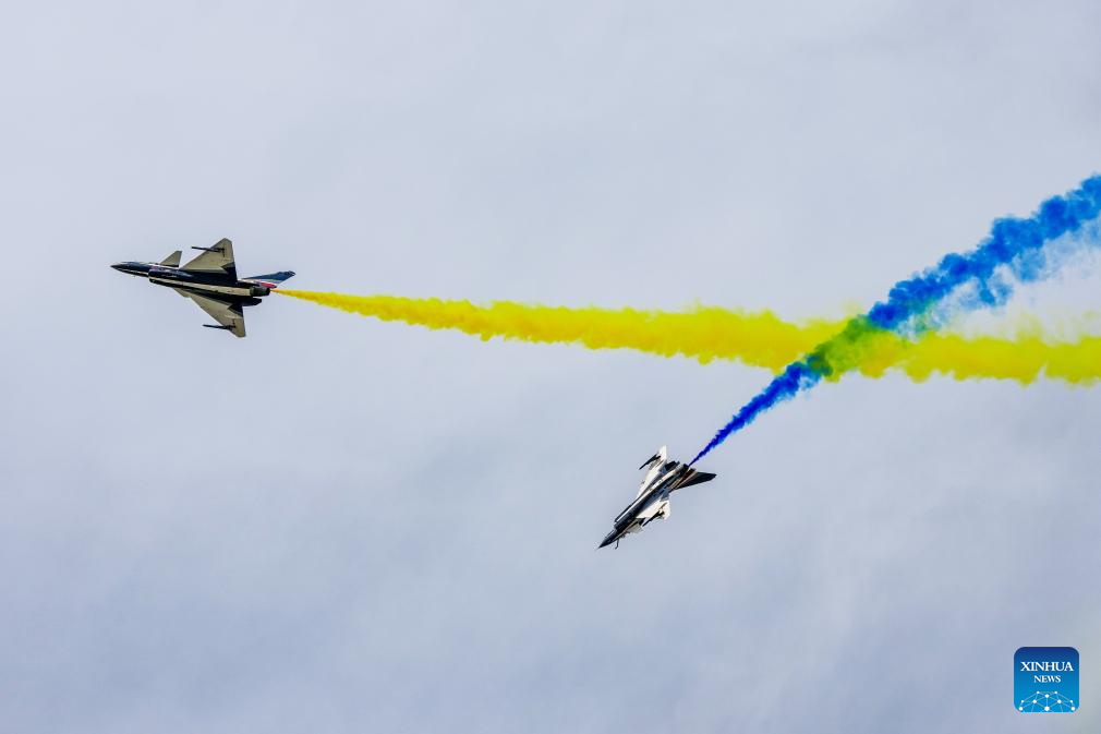 Aircraft of the Bayi Aerobatic Team of the Chinese People's Liberation Army Air Force perform during the 2025 aviation open-day activities of the Chinese People's Liberation Army Air Force and Changchun Air Show in Changchun, northeast China's Jilin Province, Sept. 19, 2025. The events kicked off here on Friday. [Xinhua/Yan Linyun]