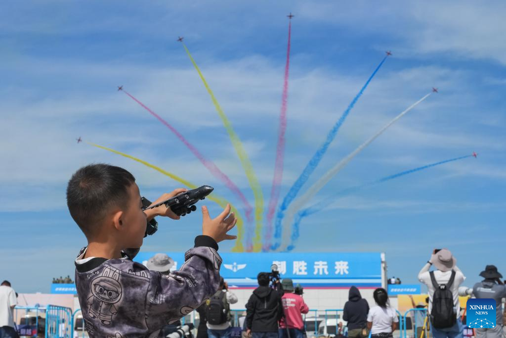 Aircraft of China's Red Falcon Aerobatic Team perform during the 2025 aviation open-day activities of the Chinese People's Liberation Army Air Force and Changchun Air Show in Changchun, northeast China's Jilin Province, Sept. 19, 2025. The events kicked off here on Friday. [Xinhua/Xu Chang]