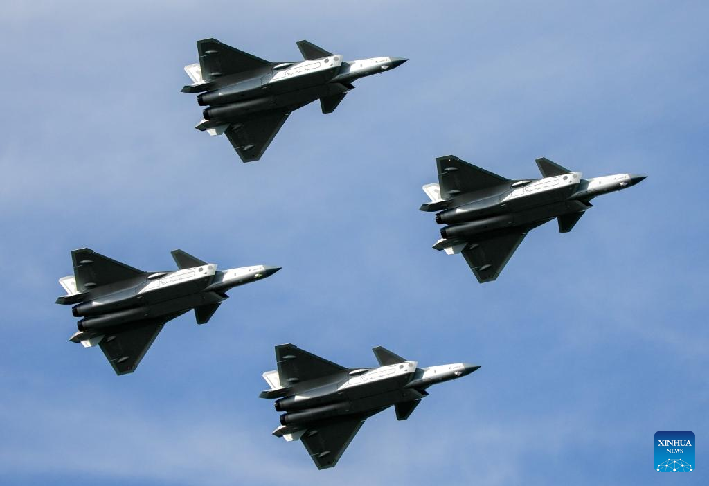 J-20 fighter jets are pictured during the 2025 aviation open-day activities of the Chinese People's Liberation Army Air Force and Changchun Air Show in Changchun, northeast China's Jilin Province, Sept. 19, 2025. The events kicked off here on Friday. [Xinhua/Yan Linyun]