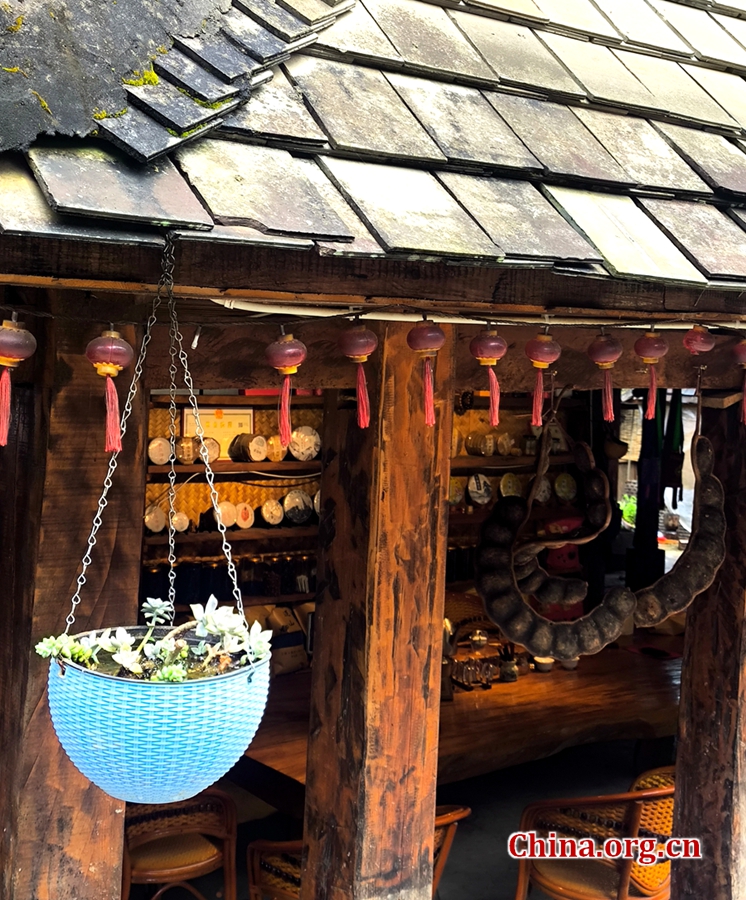 Succulents hang from house eaves in Nuogan hamlet, Mangjing village, Pu'er city, southwest China's Yunnan province, Sept. 17, 2025. [Photo by Xu Xiaoxuan/China.org.cn]