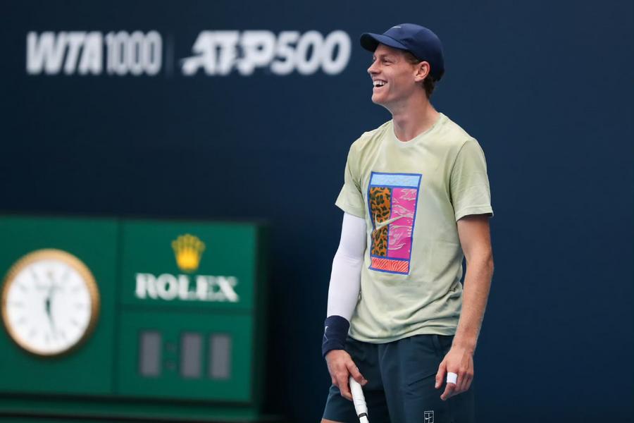 Jannik Sinner of Italy reacts during a training session ahead of the 2025 China Open in Beijing, China, Sept. 23, 2025. (Photo courtesy of China Open)