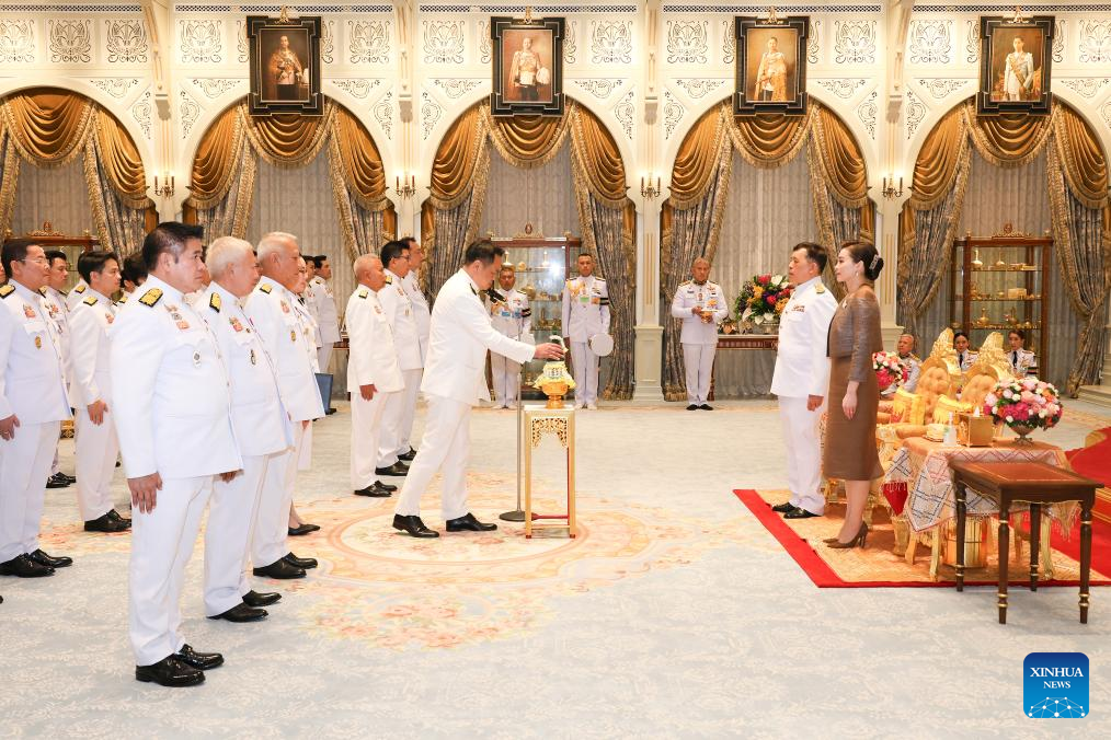 Thai Prime Minister Anutin Charnvirakul and new cabinet ministers take an oath in front of King Maha Vajiralongkorn at Dusit Palace in Bangkok, Thailand, Sept. 24, 2025. [Photo/Xinhua]