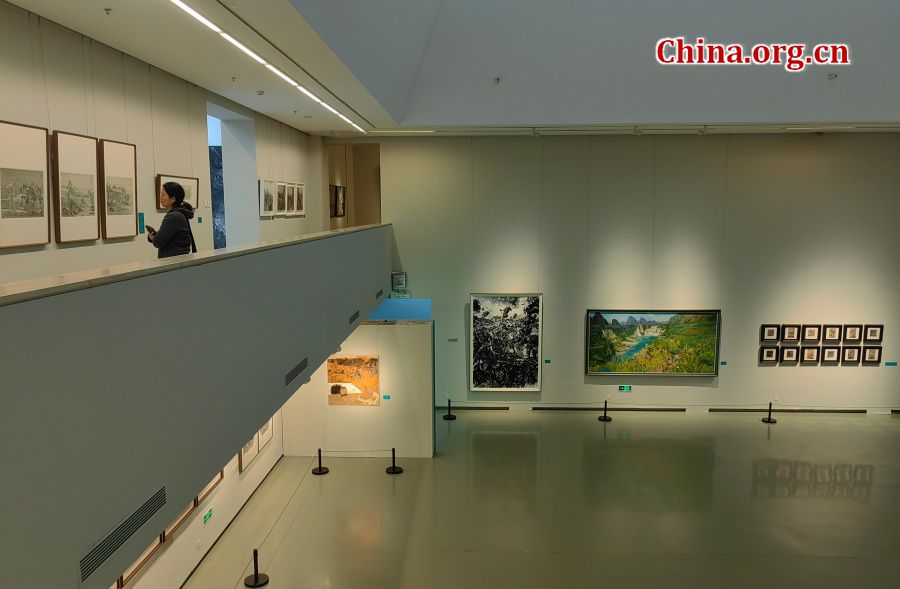 An exhibition of landscape paintings in ink and oil by contemporary Chinese artists is hosted by the China National Academy of Painting in Beijing, Oct. 9, 2025. [Photo by Liu Sitong/China.org.cn]