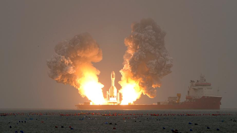 China sent a Gravity-1 carrier rocket into space from waters off the coast of Haiyang, east China's Shandong Province, on Saturday.