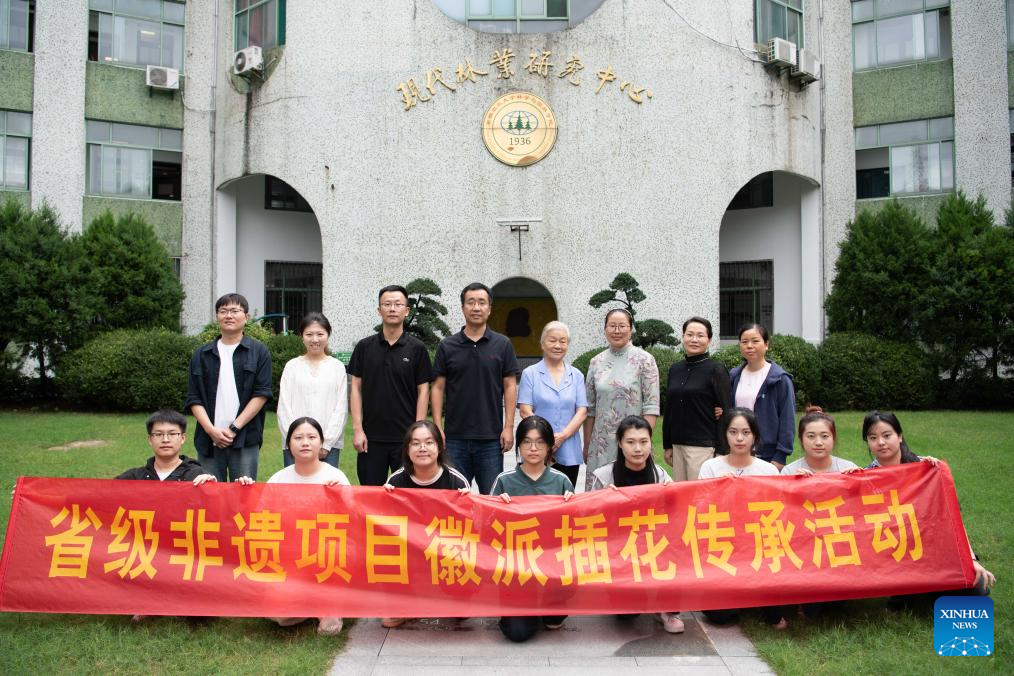 Fu Yulan (4th R, back) poses for a group photo with her team members as well as teachers and students at the School of Forestry and Landscape Architecture of the Anhui Agricultural University in Hefei, east China's Anhui Province, Sept. 30, 2025. [Xinhua/Zhang Duan]