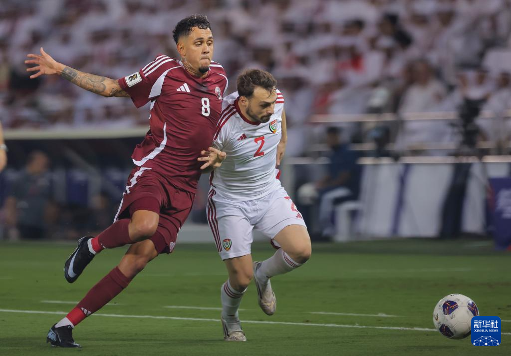 Qatar defeated the UAE 2–1 in a decisive AFC World Cup 2026 qualifier in Doha, securing their spot in next year's tournament. [photo:xinhua]