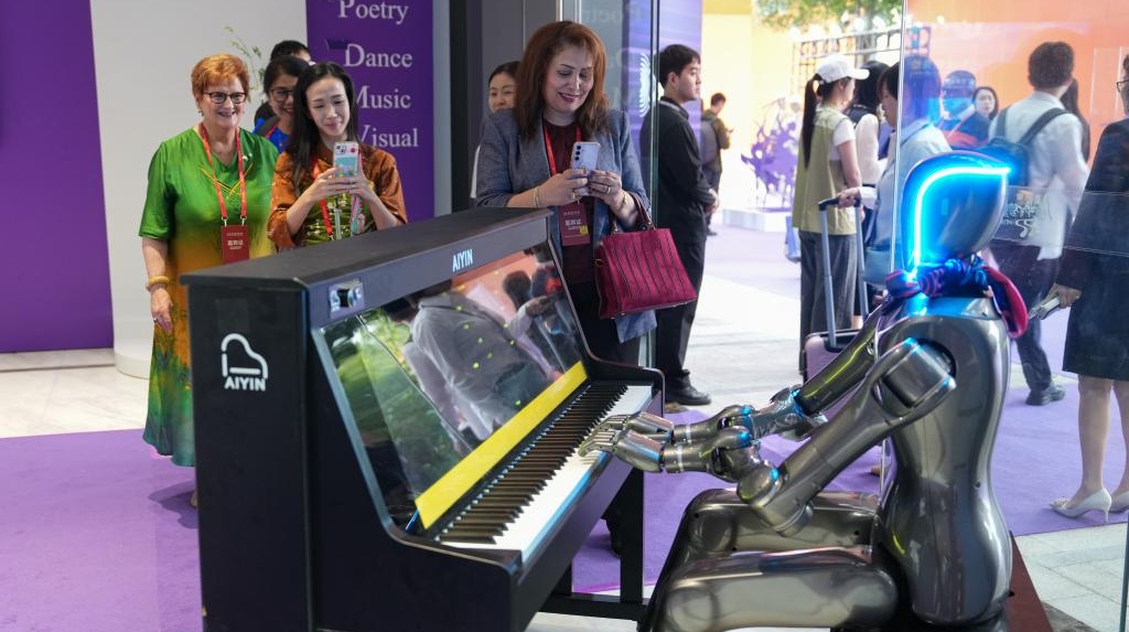 Guests watch a performance staged by a song and dance troupe during the World Poetry, Dance, Music and Visual Arts Salon in Hangzhou, east China's Zhejiang Province, Oct. 18, 2025. The World Poetry, Dance, Music and Visual Arts Salon was held here on Saturday as a sideline event of the third Liangzhu Forum. The salon features performances and civilization dialogues, with the participation of more than 20 international artists and cultural scholars. (Xinhua/Huang Zongzhi)