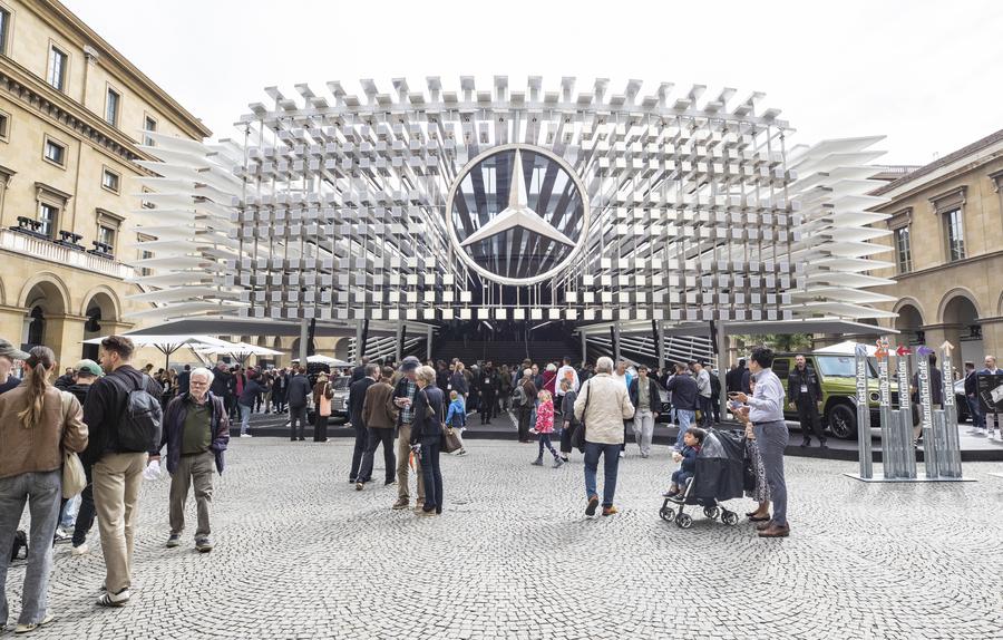 People visit the exhibition zone of Mercedes-Benz at the Open Space of the 2025 IAA Mobility in Munich, Germany, Sept. 11, 2025. [Photo/Xinhua]