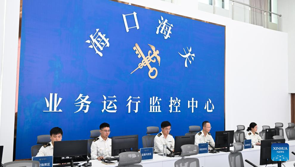 This photo taken on Oct. 22, 2025 shows an interior view of the business operation monitoring center of the Haikou Customs in Haikou, south China's Hainan Province. [Photo/Xinhua]