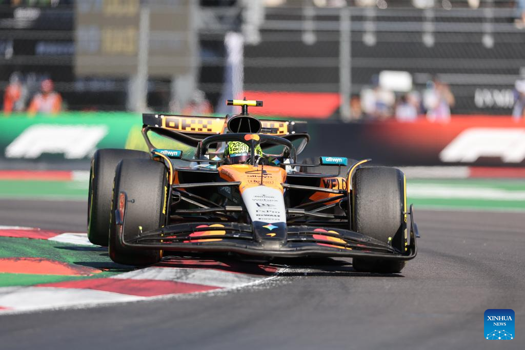 McLaren's British driver Lando Norris competes during the Formula One Mexico Grand Prix at the Hermanos Rodriguez Circuit in Mexico City, Mexico, Oct. 26, 2025. (Xinhua/Li Mengxin)