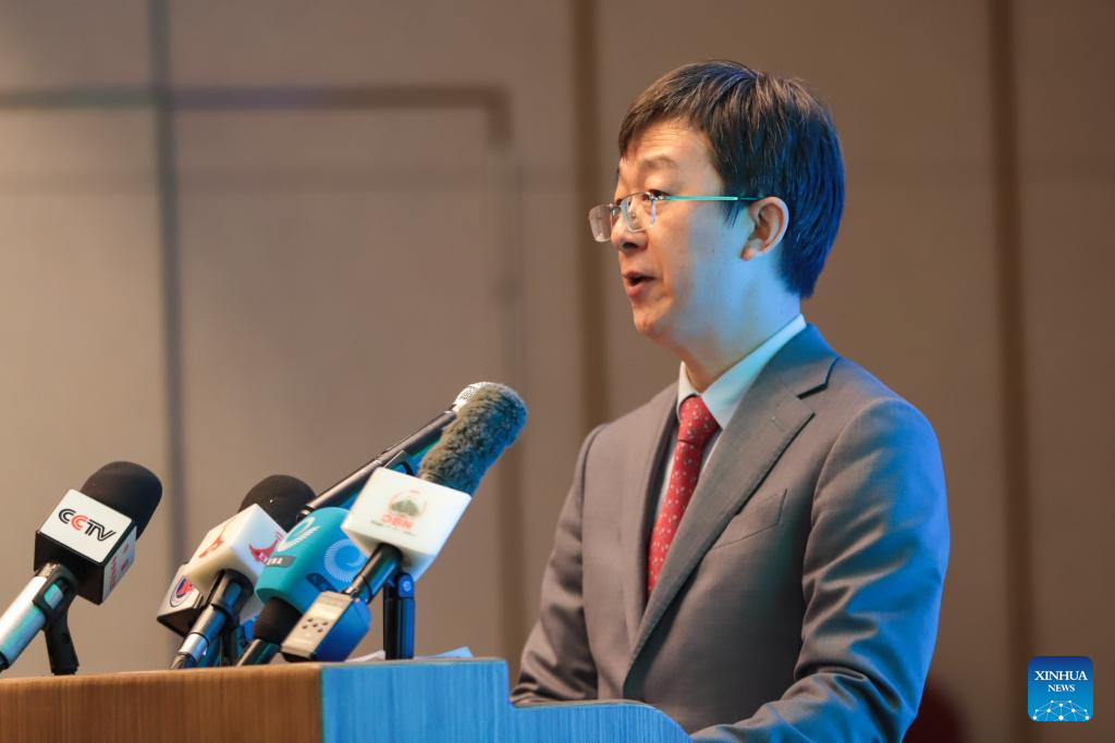 Jiang Feng, head of the Chinese Mission to the African Union, speaks at the 2025 General Assembly of the China-Africa Agricultural Science and Technology Innovation Alliance in Addis Ababa, Ethiopia's capital, on Oct. 27, 2025. [Photo/Xinhua]