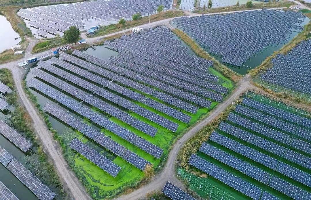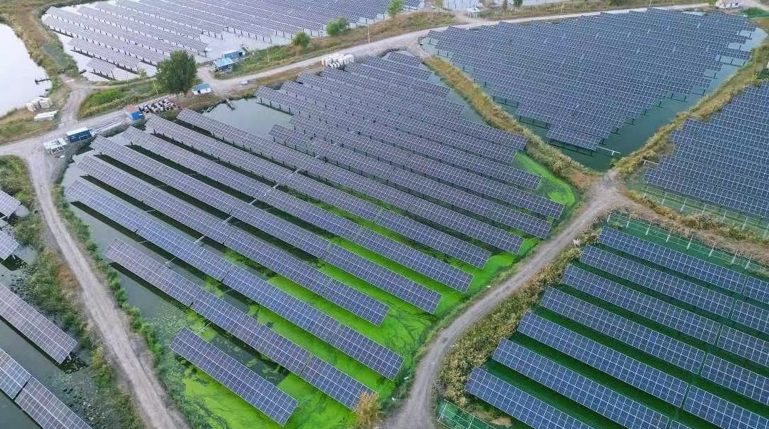 This aerial photo taken on July 17, 2023 shows the newly built solar farm of Tianjin Yinghua New Energy Technology Development Co., Ltd. in north China's Tianjin. [Photo/Xinhua]