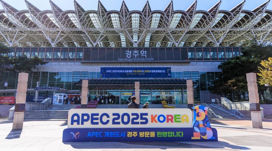 This photo taken on Oct. 28, 2025 shows a publicity installation of the 32nd Asia-Pacific Economic Cooperation (APEC) Economic Leaders' Meeting in Gyeongju, South Korea. [Photo/Xinhua]