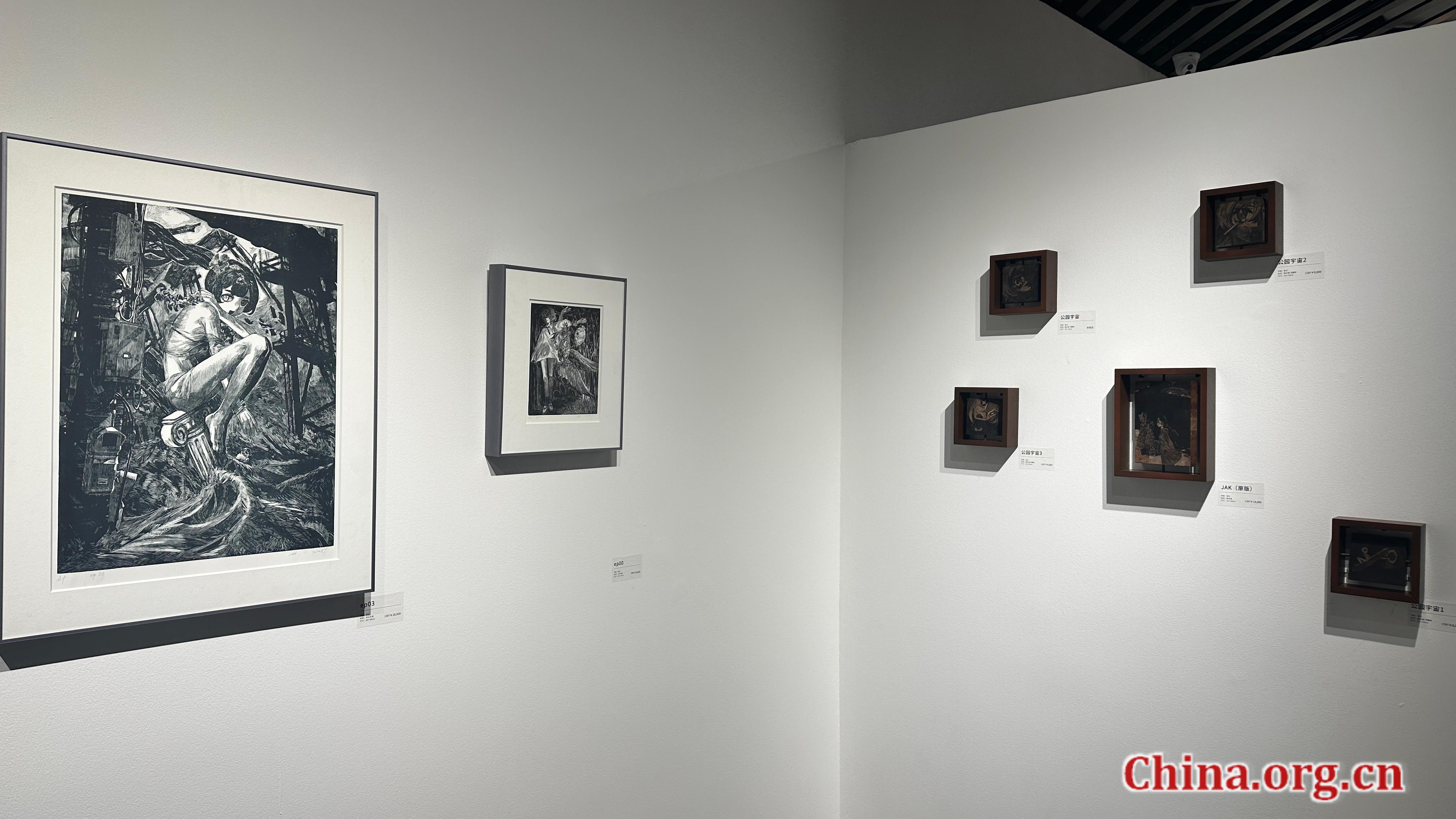 Works by Li Zheng, a Gen-Z artist deeply shaped by internet culture, on display at Rendez-Vous Gallery, Beijing, Oct. 27, 2025. [Photo by Liu Ziying/China.org.cn]