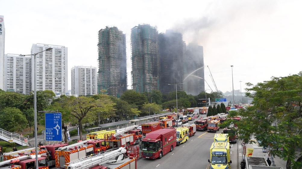 This photo taken on Nov. 27, 2025 shows a scene at the rescue site in Wang Fuk Court, a residential area in Tai Po of Hong Kong, south China. [Photo/Xinhua]