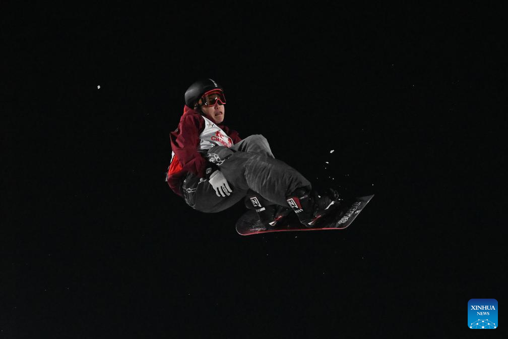 Zhao Yingxu of China competes during the men's big air final at the FIS Snowboard World Cup in Beijing, China, Dec. 6, 2025. (Xinhua/Ju Huanzong)