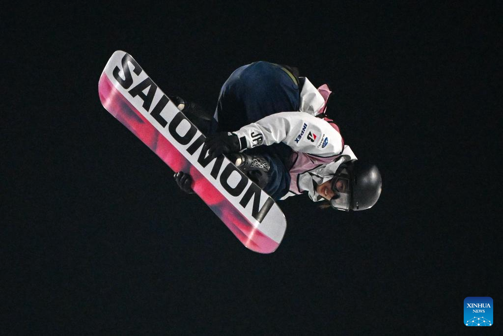 Suzuki Momo of Japan competes during the women's big air final at the FIS Snowboard World Cup in Beijing, China, Dec. 6, 2025. (Xinhua/Ju Huanzong)