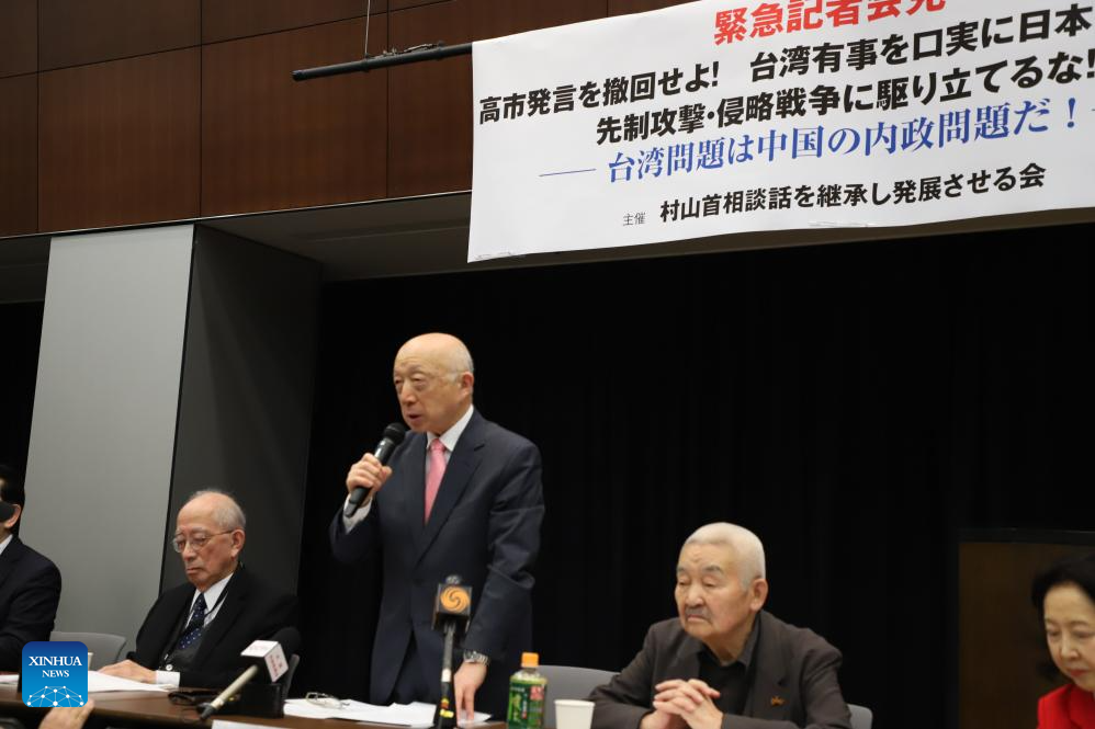 Over a dozen Japanese scholars, former government officials and media figures held a press conference in Tokyo on Monday, urging Prime Minister Sanae Takaichi to immediately retract her earlier erroneous remarks on Taiwan, warning the comments could further strain Japan-China relations.