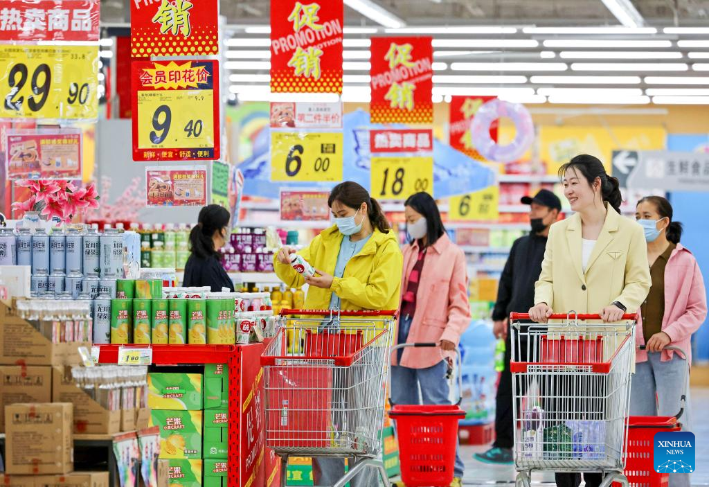 People shop at a supermarket in Zaozhuang City, east China's Shandong province, May 10, 2025. [Photo/Xinhua]