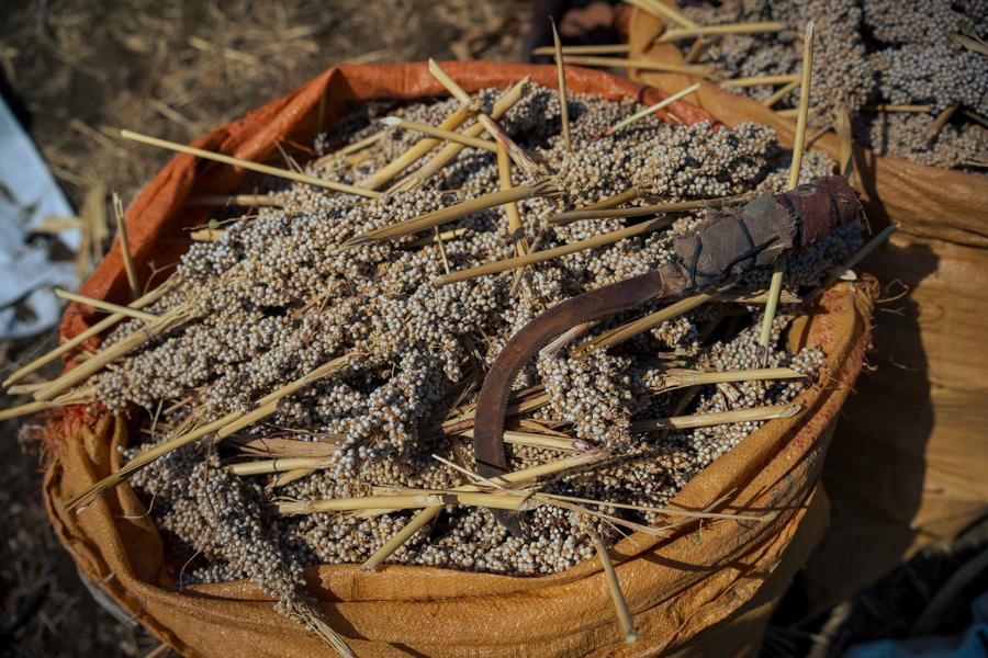 Photo taken on Dec.12, 2025 shows sorghum inside a sack in the Wad Al-Hilu area in Kassala State in eastern Sudan. (Photo by Tariq Ishaq Musa/Xinhua)