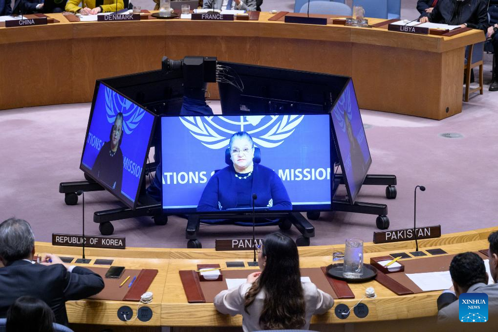 The Security Council holds a meeting on the situation in Libya at the UN headquarters in New York, Dec. 19, 2025. The top UN envoy for Libya said Friday that she intends to present an alternative mechanism as a political roadmap for Libya toward elections, which have been stalled. [Evan Schneider/UN Photo/Handout via Xinhua]