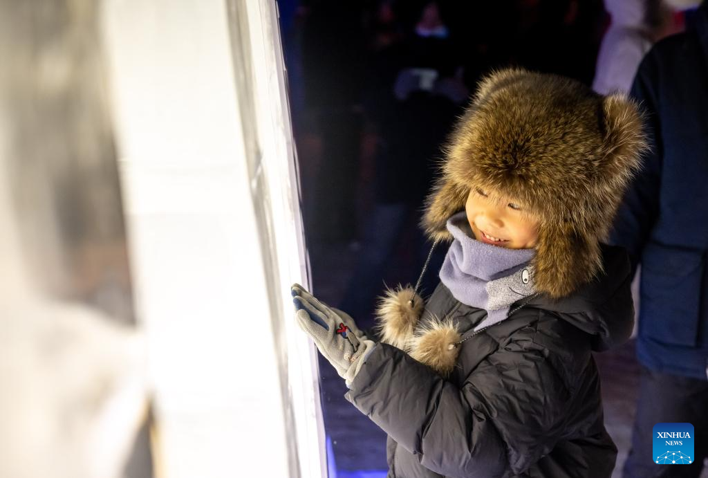 A child plays at an ice and snow theme park in Manzhouli, north China's Inner Mongolia Autonomous Region, Dec. 20, 2025. The 22nd China-Russia-Mongolia international ice and snow festival opened here on Saturday.