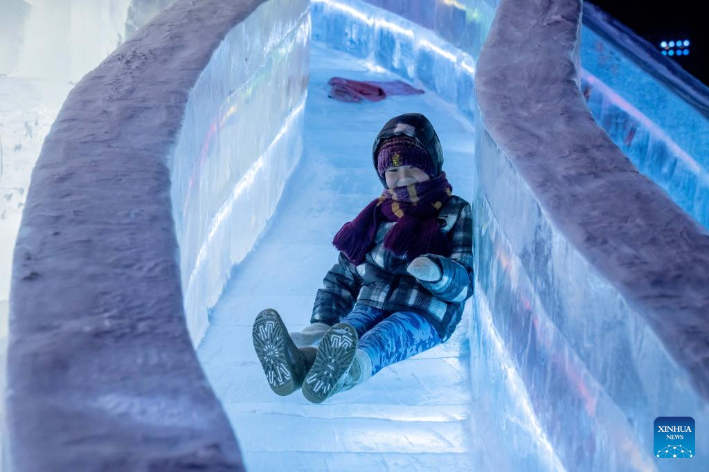 A child plays at an ice and snow theme park in Manzhouli, north China's Inner Mongolia Autonomous Region, Dec. 20, 2025. The 22nd China-Russia-Mongolia international ice and snow festival opened here on Saturday.