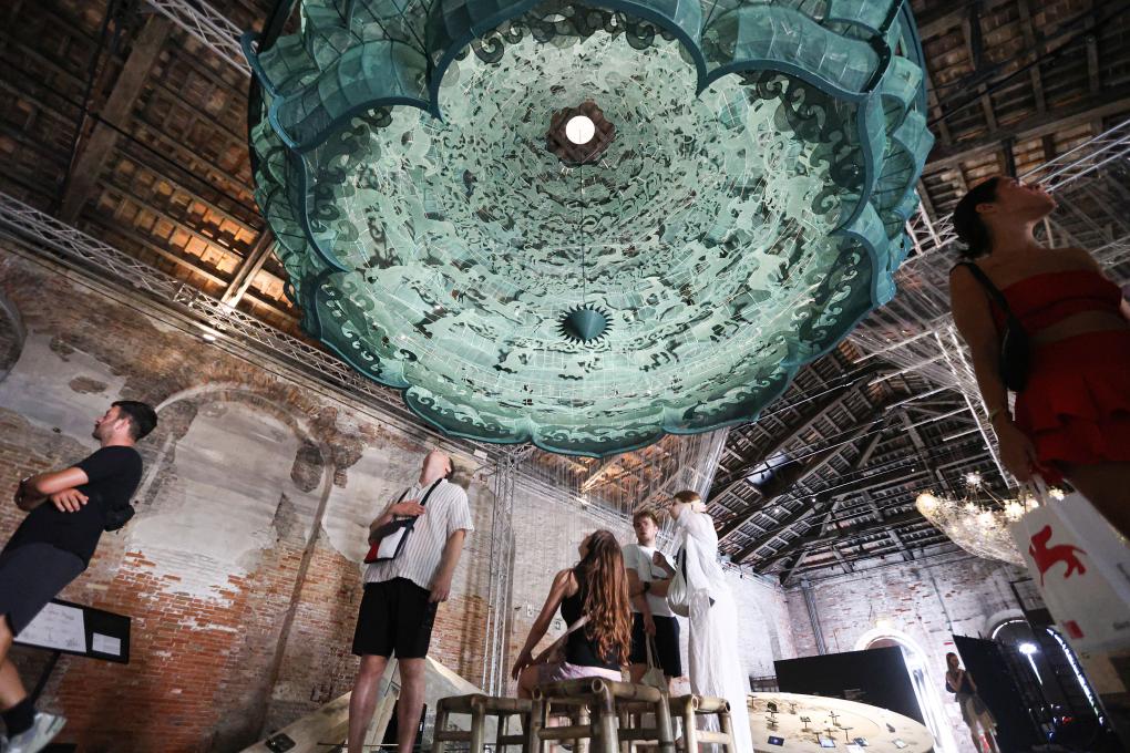 Visitors watch an exhibit named "Vault of Heaven" at the China's National Pavilion of the 19th International Architecture Exhibition of La Biennale di Venezia in Venice, Italy, July 16, 2025. (Xinhua/Li Jing)