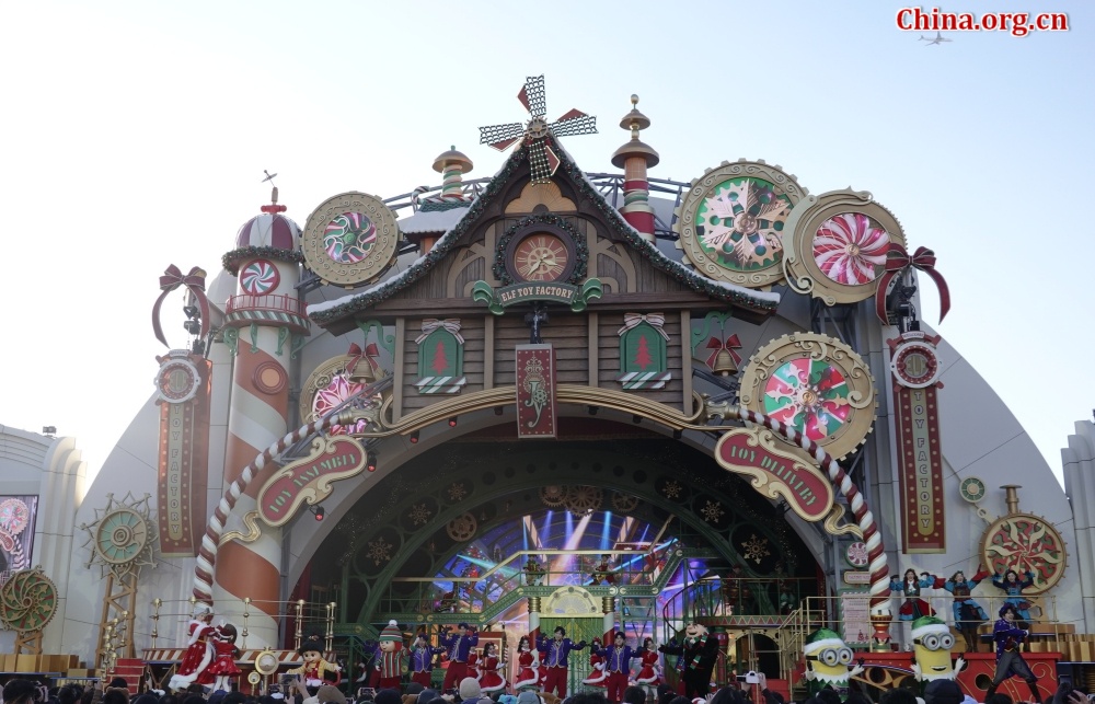 Performers entertain visitors during a holiday show at Universal Beijing Resort, Dec. 24, 2025. [Photo by Yan Xiaoqing/China.org.cn]