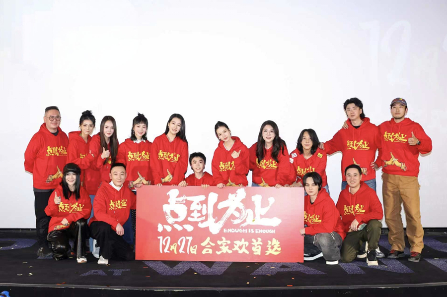 The cast and crew of "Enough Is Enough" pose for a photo at the film's premiere in Beijing, Dec. 26, 2025. [Image courtesy of Happytime Film]