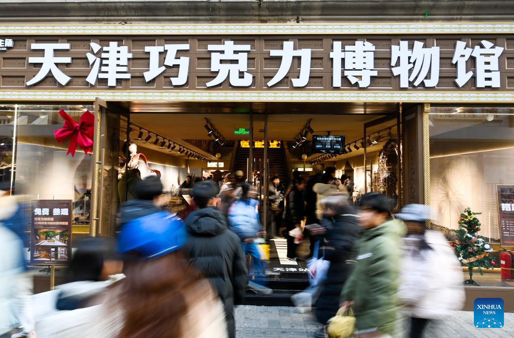 This photo shows a chocolate museum in Tianjin, north China, Dec. 28, 2025. A chocolate museum has officially opened to the public in Tianjin. The museum displays more than 20 sets of handmade chocolate sculptures, with a total chocolate usage of nearly 10 tonnes. (Xinhua/Zhao Zishuo)