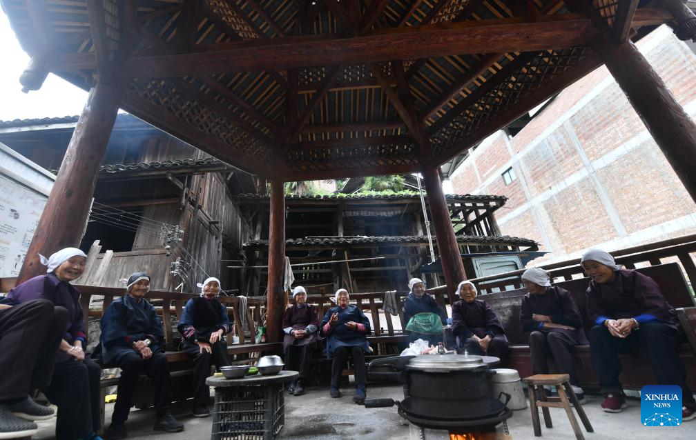 Senior villagers chat at Gaoding Village of Dudong Town in Sanjiang Dong Autonomous County, south China's Guangxi Zhuang Autonomous Region, Nov. 5, 2025. Recent years saw local authorities in Guangxi boosting the development of tourism in the rural areas through a variety of cultural initiatives. (Xinhua/Huang Xiaobang)