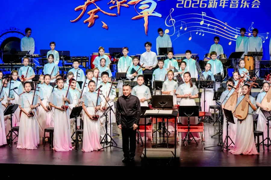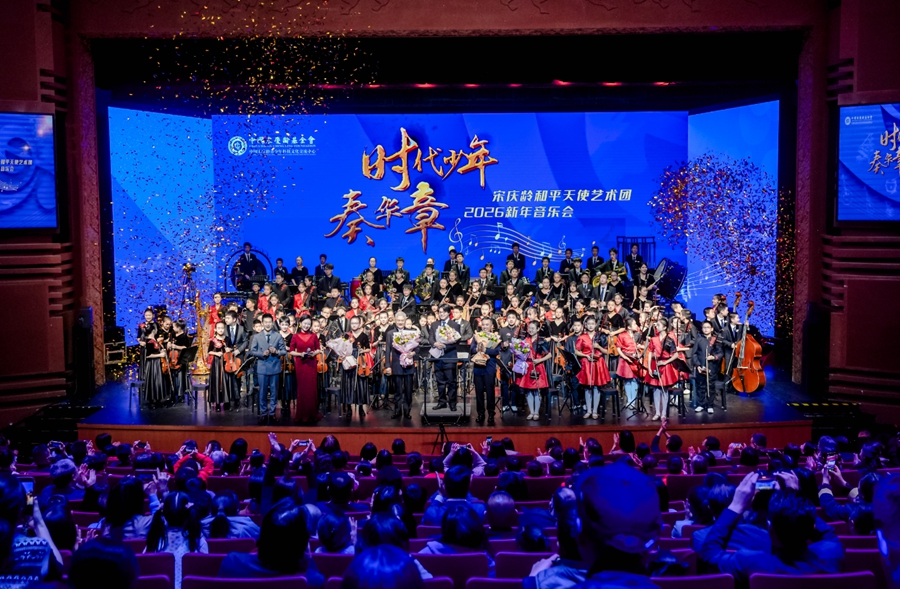 12月26日晚,宋庆龄和平天使艺术团在北京举办2026新年音乐会,这场音乐会主题为“时代少年奏华章”,融合了民乐与交响乐,由艺术团小团员参与演奏。