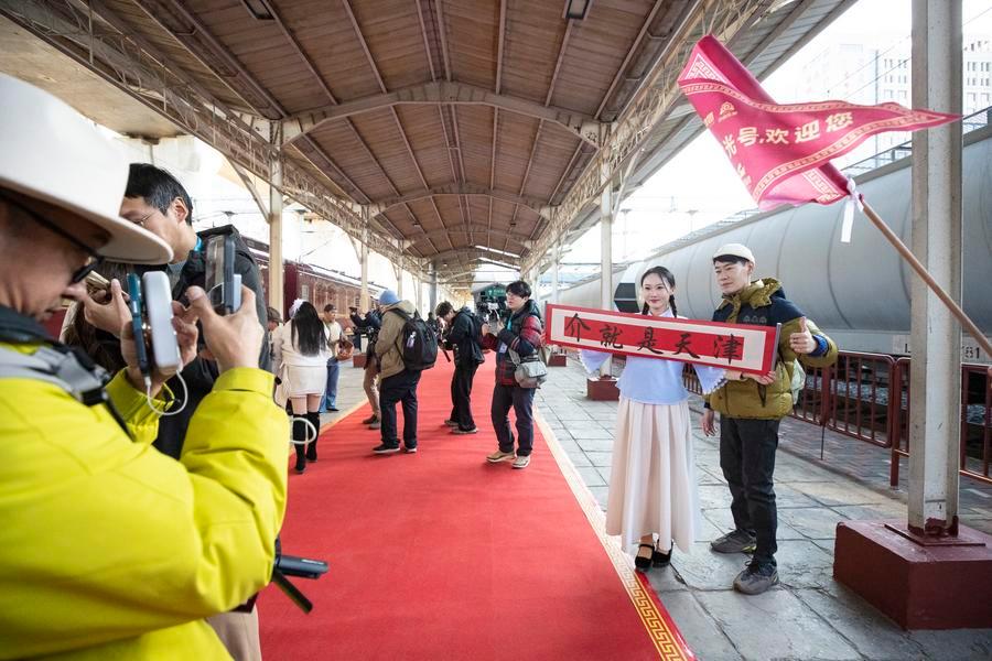 The Tianjin Fantasy Express has begun a scheduled round-trip service between Tianjin North Railway Station and Beijing Railway Station since Thursday. The line features 10 distinctively themed carriages integrating art performances, cultural presentations and intangible cultural heritage experience.