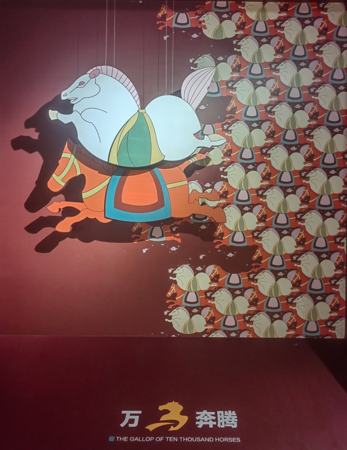 Drawing inspirations from Tang dynasty artistic creations, the first prize work for graphic design by Fang Lefei is featured at the "Global Zodiac Design Competition Invitational Exhibition" for the Year of the Horse at Beijing Overseas Cultural Exchange Center in Beijing, Jan. 1, 2026. [Photo by Liu Sitong/China.org.cn]