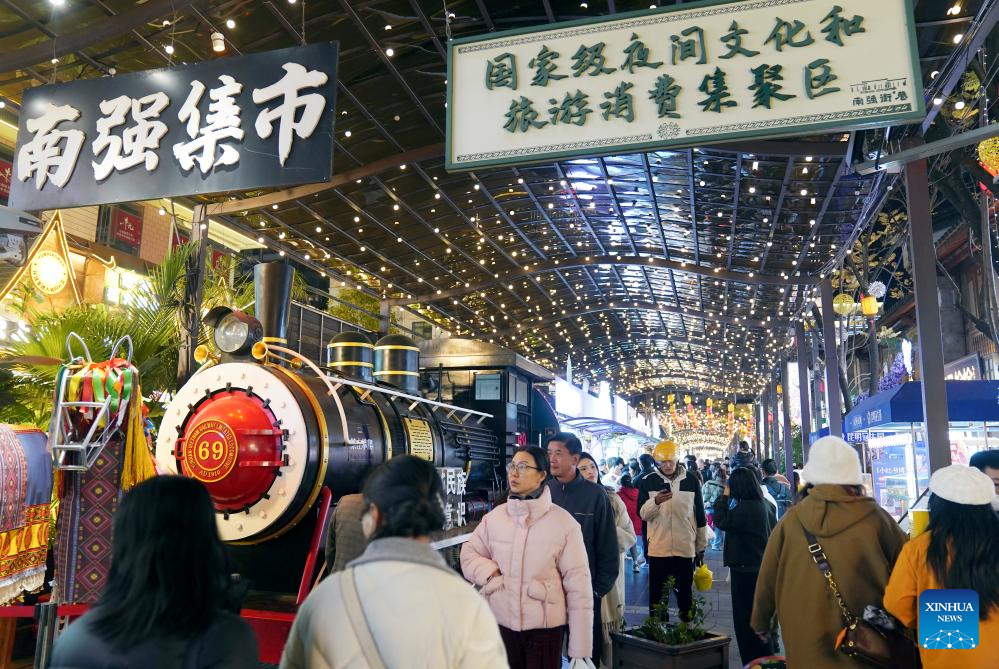 Tourists visit Nanqiang Street in Kunming, southwest China's Yunnan Province, Jan. 1, 2026. China's economy kicked off 2026 with robust momentum, as evidenced by bustling economic activity in the year's first days. (Photo by Liang Zhiqiang/Xinhua)