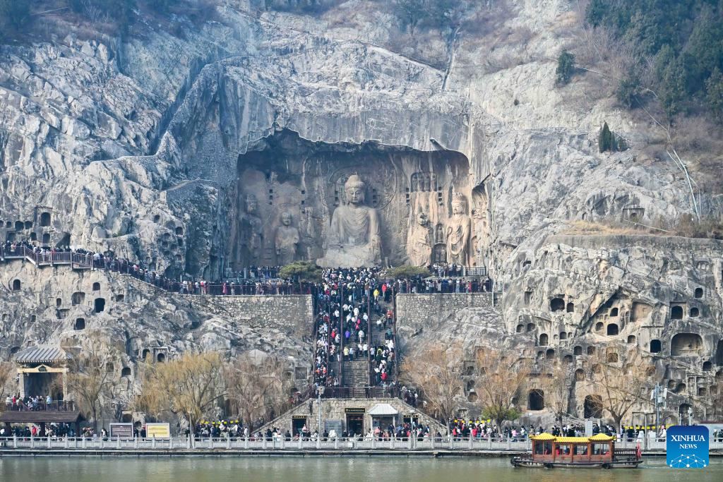 Tourists visit the Longmen Grottoes scenic spot in Luoyang City, central China's Henan Province on Jan. 2, 2026. China's economy kicked off 2026 with robust momentum, as evidenced by bustling economic activity in the year's first days. (Photo by Li Weichao/Xinhua)