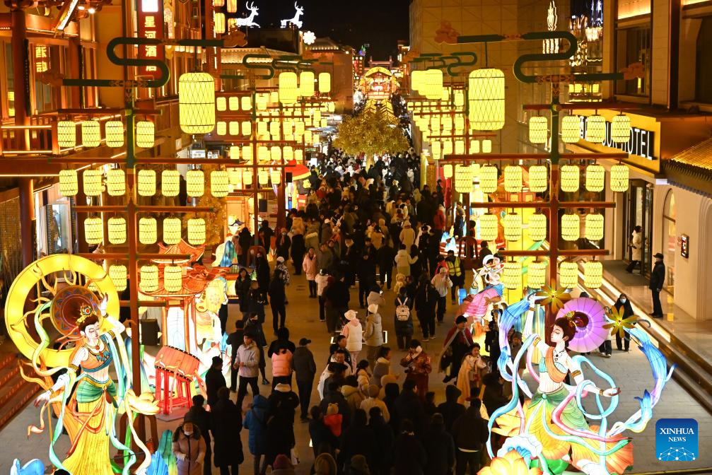 Tourists visit a night market in Dunhuang, northwest China's Gansu Province on Jan. 1, 2026. China's economy kicked off 2026 with robust momentum, as evidenced by bustling economic activity in the year's first days. (Photo by Zhang Xiaoliang/Xinhua)