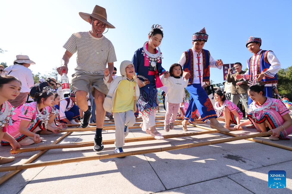 Tourists enjoy bamboo pole dance at a scenic area in Sanya, south China's Hainan Province, Jan. 1, 2026. China's economy kicked off 2026 with robust momentum, as evidenced by bustling economic activity in the year's first days. (Photo by Chen Wenwu/Xinhua)