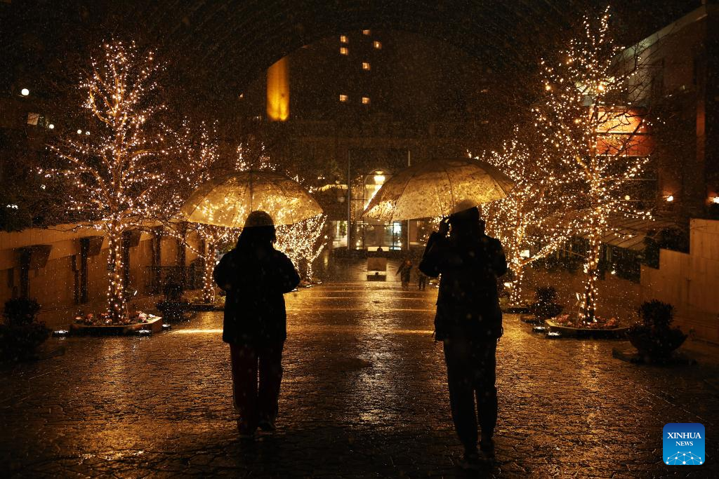 People walk on a street on the first snow day of 2026 in Tokyo, Japan, Jan. 2, 2026. (Xinhua/Jia Haocheng)