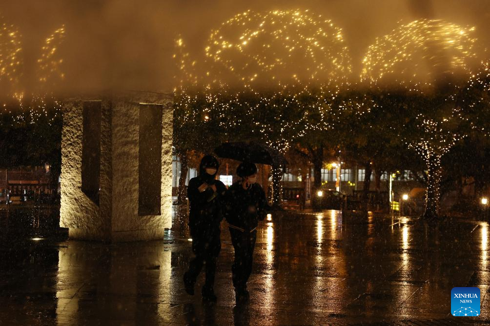 People walk on a street on the first snow day of 2026 in Tokyo, Japan, Jan. 2, 2026. (Xinhua/Jia Haocheng)