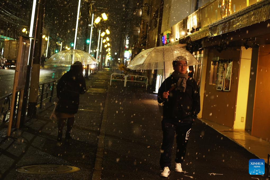 People walk on a street on the first snow day of 2026 in Tokyo, Japan, Jan. 2, 2026. (Xinhua/Jia Haocheng)