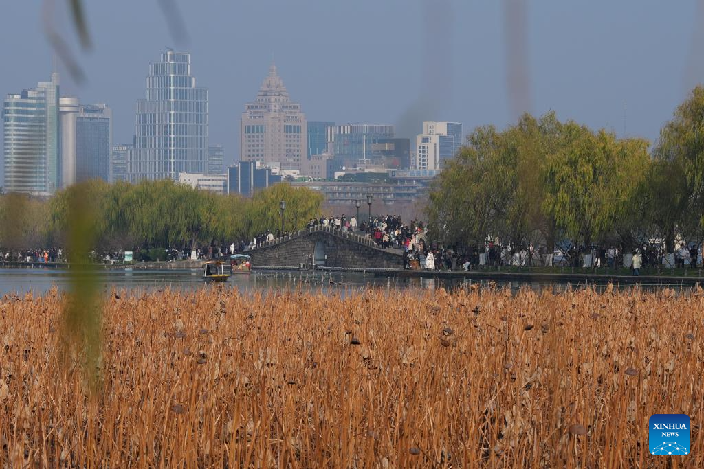 Tourists visit the West Lake scenic area in Hangzhou, east China's Zhejiang Province, Jan. 3, 2026. People engaged in various leisure activities during the New Year's Day holiday. (Xinhua/Huang Zongzhi)