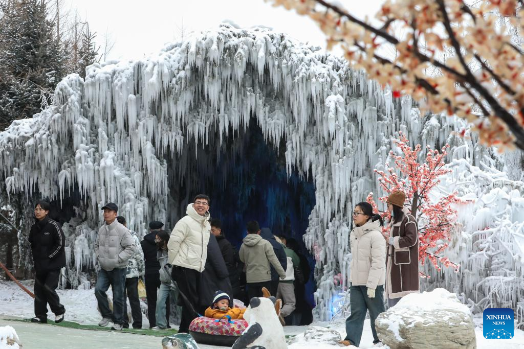 Tourists visit a scenic area in Linxia Hui Autonomous Prefecture, northwest China's Gansu Province, Jan. 2, 2026. People engaged in various leisure activities during the New Year's Day holiday. (Xinhua/Lang Bingbing)